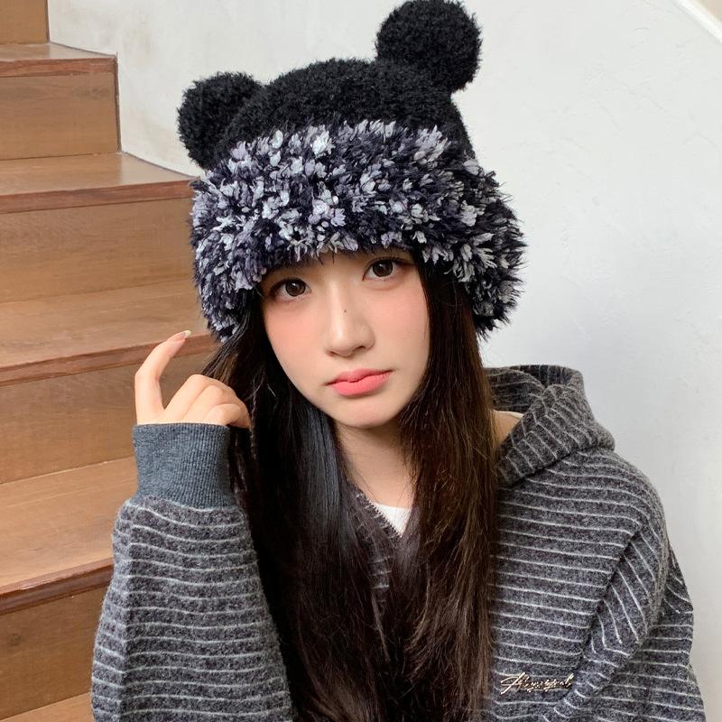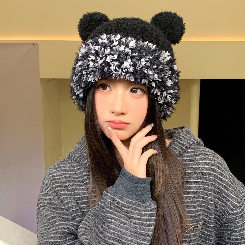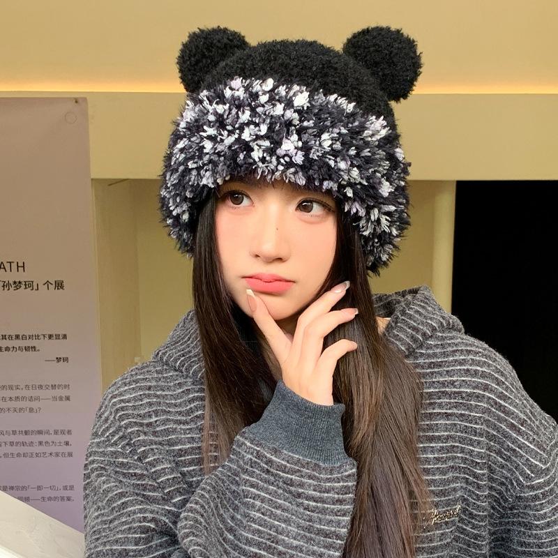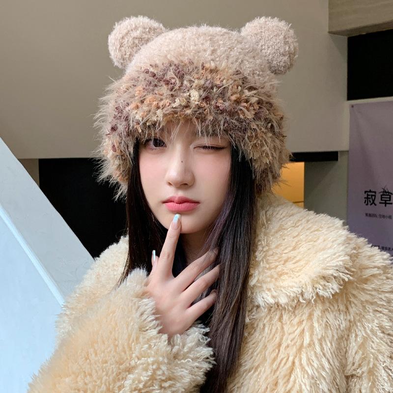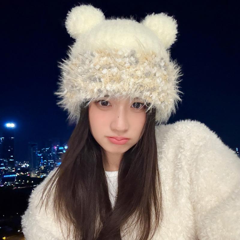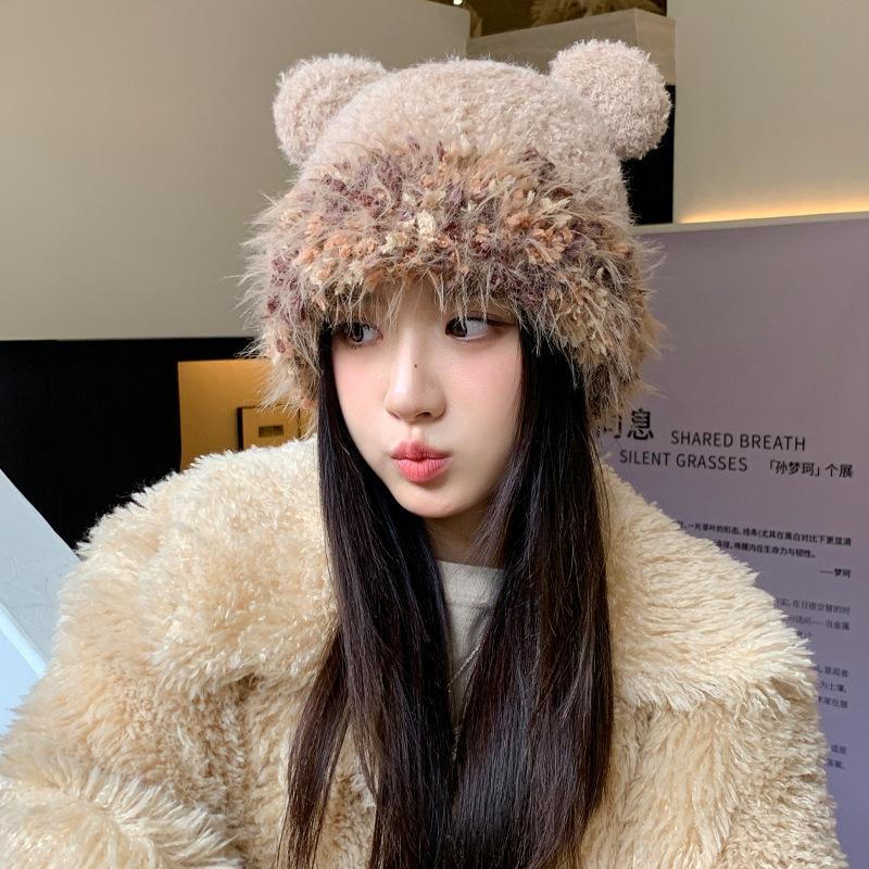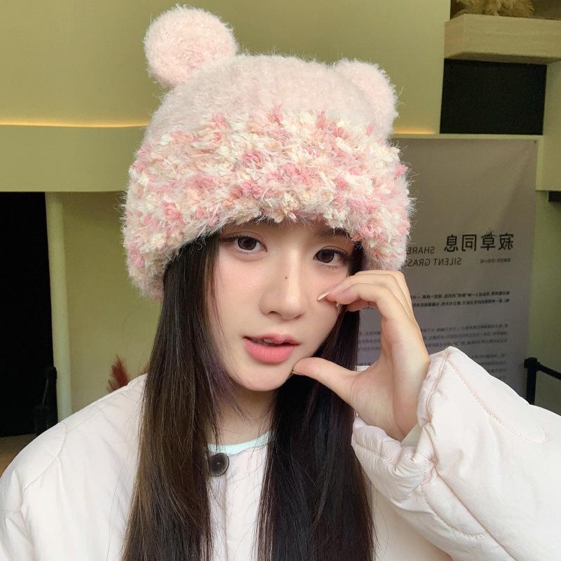 Зимняя шапка для девочки, милая, вязаная шерстяная шапка, холодная и теплая, ветрозащитная, с защитой ушей, плюшевая шапка