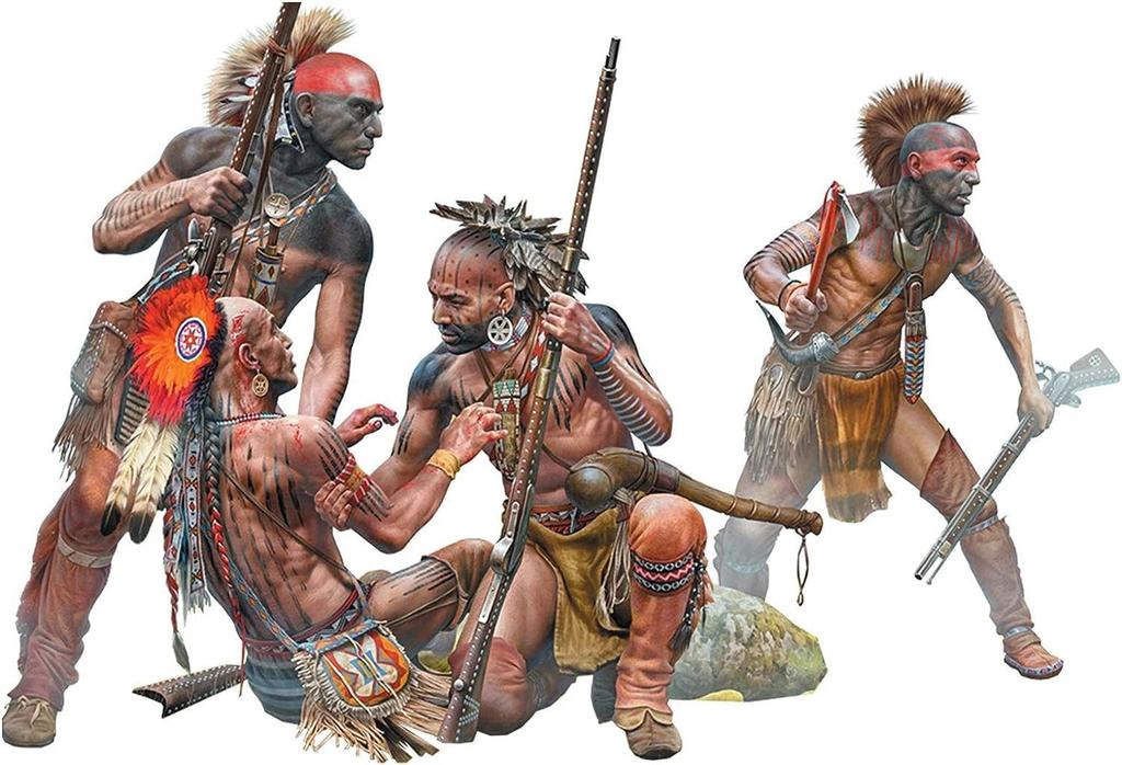 Master Box Масштаб 1/35 Индейские войны Оборонительный круг, 4 солдата коренных американцев, XVIII век, Нет. 1 Пластиковая модель, MB35209