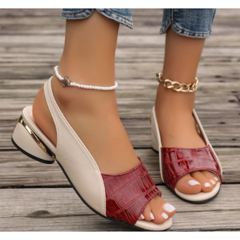 Летние новые сандалии женские средний каблук толстый каблук мягкая кожа прохладные шлепанцы носить рыбий рот большой размер женская обувь