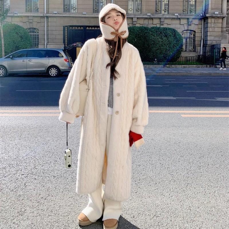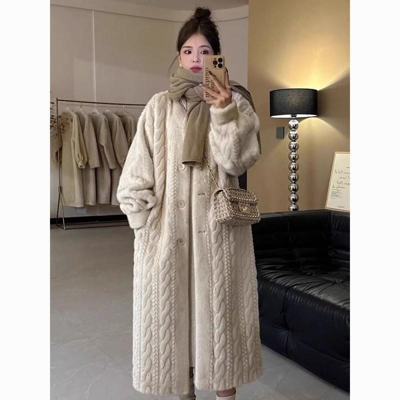 Однотонное свободное пальто-кардиган женское зимнее из норки, бархатное, меховое, пальто из одной овечьей шерсти, длинное пальто