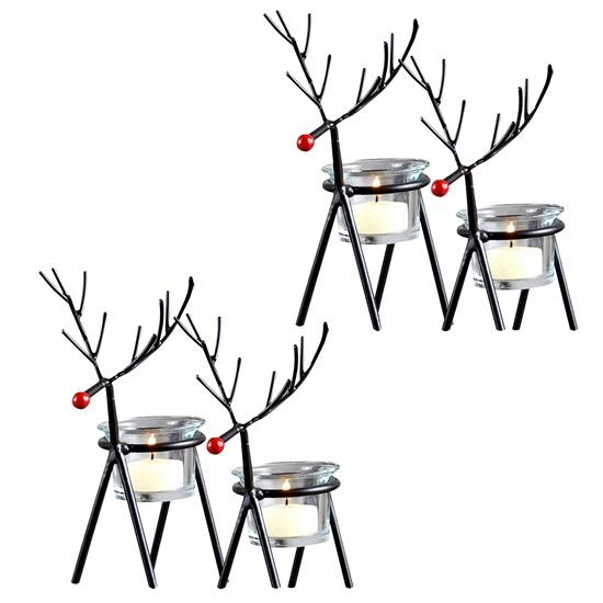 Включенные компоненты: 4 держателя в форме оленя + 4 стеклянных подсвечника для чайных свечей