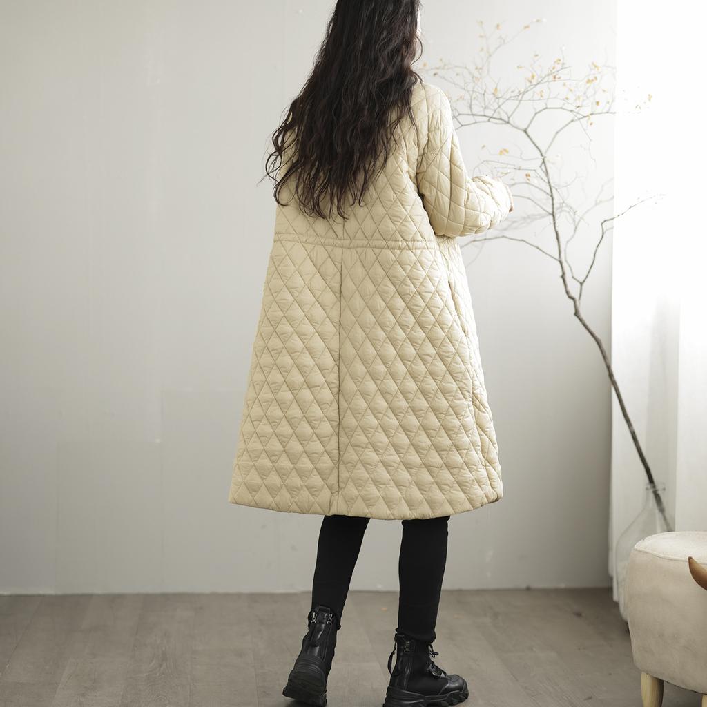Зимняя женская хлопковая верхняя одежда свободного кроя средней длины с ромбовидным узором в клетку, однотонная, новый стиль, женская куртка