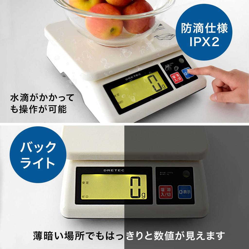 dretec Коммерческие весы, Шаг 5 г/До 10 кг, Водостойкие (IPX2), Регулируемое выравнивание ножками, Цифровые кухонные весы для коммерческого использования