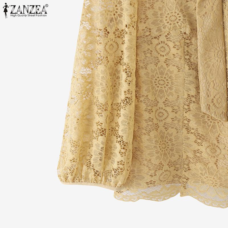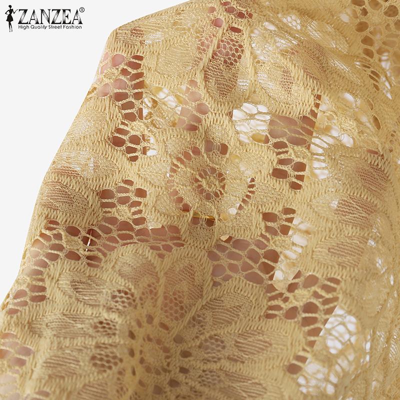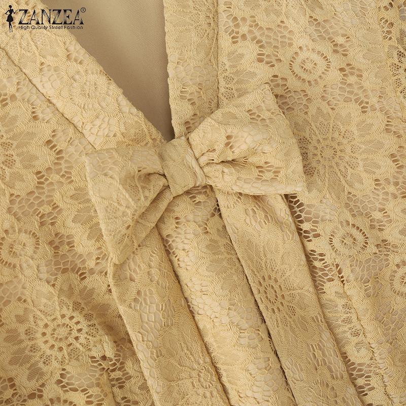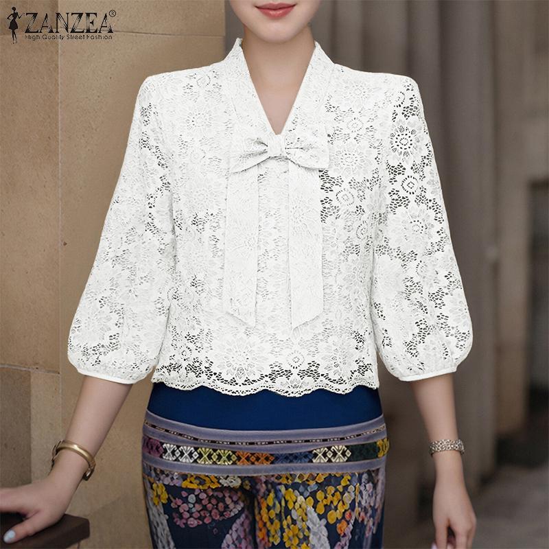 ZANZEA Женская повседневная блузка с V-образным вырезом, рукавами 3/4 и кружевной вставкой в стиле пэчворк
