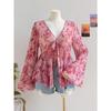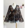 Женский топ с V-образным вырезом, принтом, в отпускном стиле, с расклешенными рукавами, свободного кроя