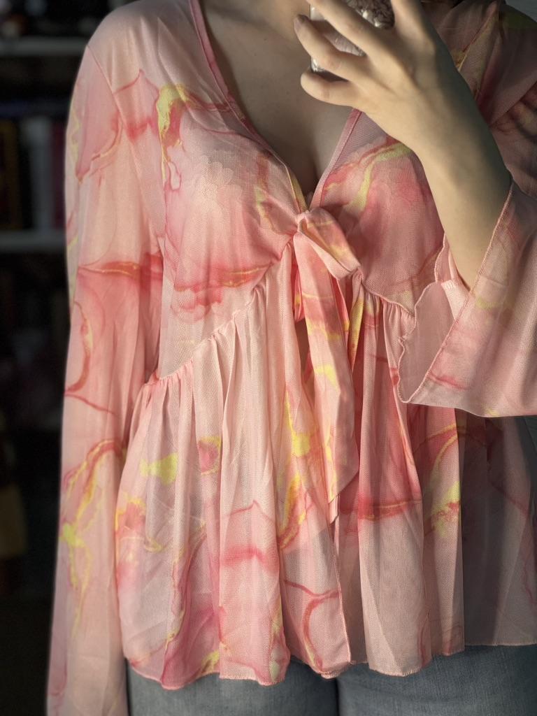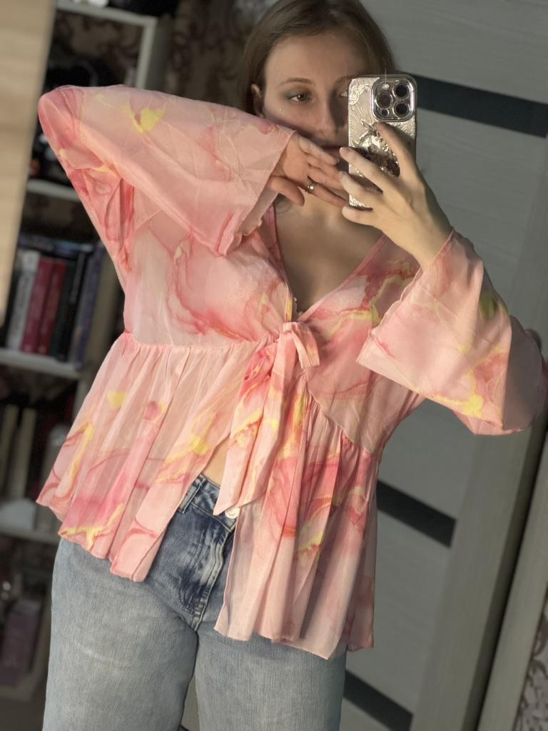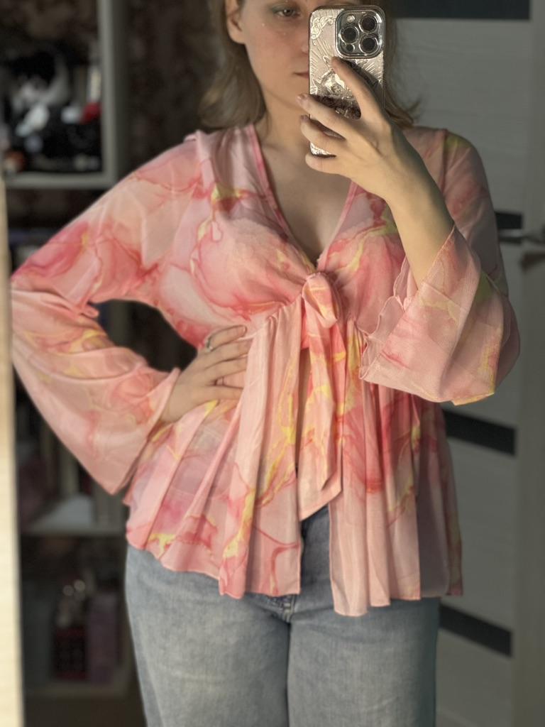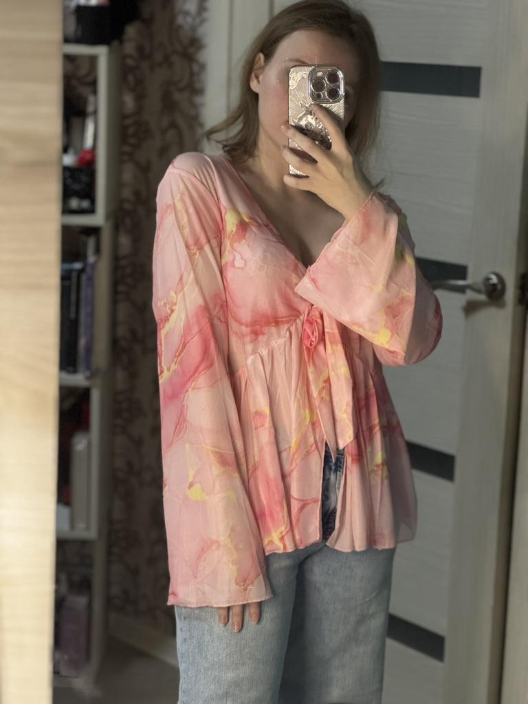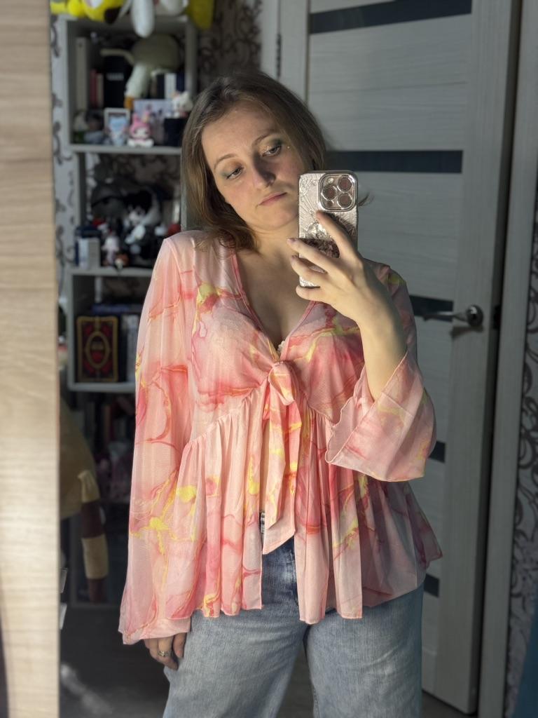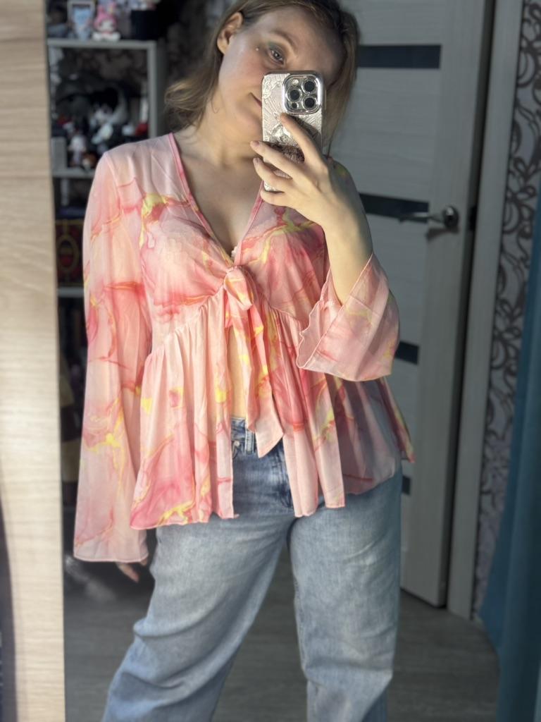 Блузка плюс-сайз 🌸 Хорошенькая сетчатая, легкая блузка. Принт, конечно, прислали не тот, который я заказывала, но тоже розовый и смотрится он тоже хорошо) Получается такая оверсайз блузка, которая будет хорошо смотреться летом, особенно на пляже поверх купальника, мне кажется. Но с джинсой тоже замечательно смотрится! Опять же, на мой обхват груди 89 см не совсем удачно получается в обхвате, но удобоваримо)