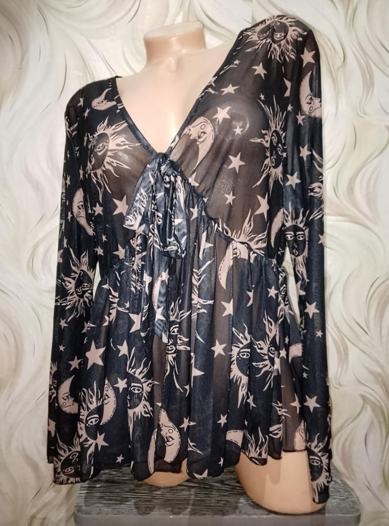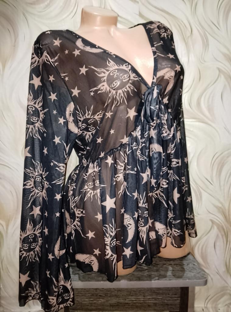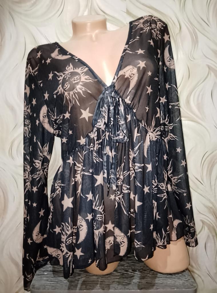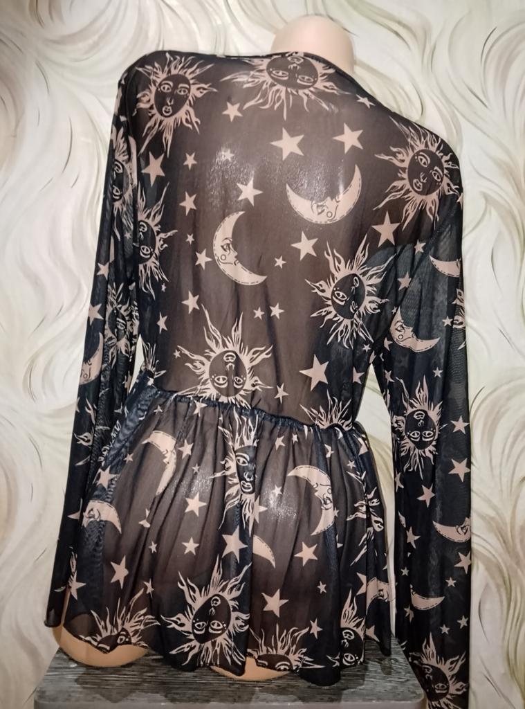 Друзья💞, черно-коричневая прозрачная кофточка с принтом "День-ночь" от магазина "CANVAUS". Выбор цвета. Выбор принта. Размер 1 XL: -рукав 62 см -ОГ 102 см -ОТ 90 см -длина вещи 66 см Материал: полиэстер и хлопок. На завязке. Сезон: лето. Стиль: готика. Упаковка: 2 пакета. Доставка: 22 дня в Карагандинскую область. Активно рекомендую👍