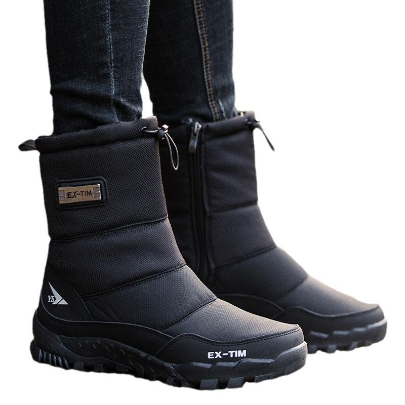 Зимние парные сноубутсы Мужские высокие теплые и плюшевые хлопковые ботинки Мужские водонепроницаемые и противоскользящие ботинки средней длины