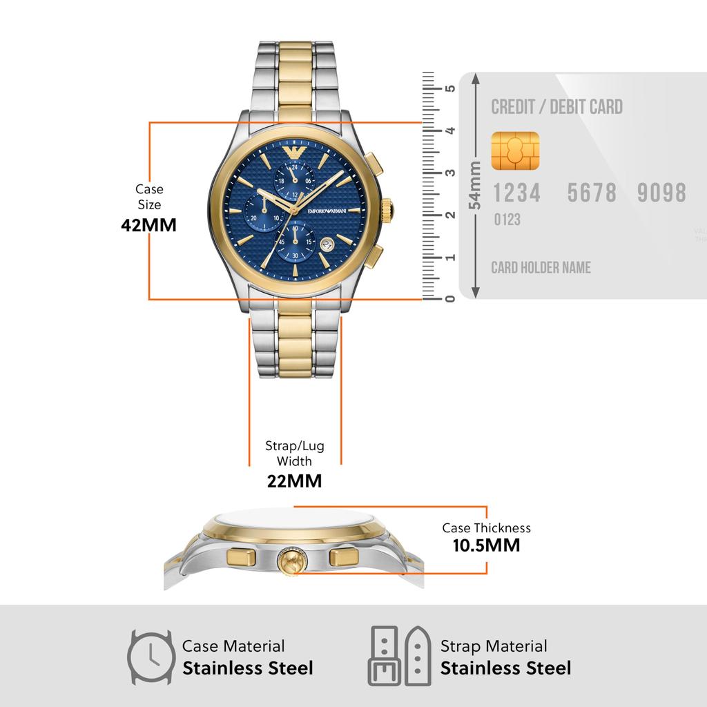 Emporio Armani Swiss Made PAOLO AR11579 Men's Watch, Silver & Gold