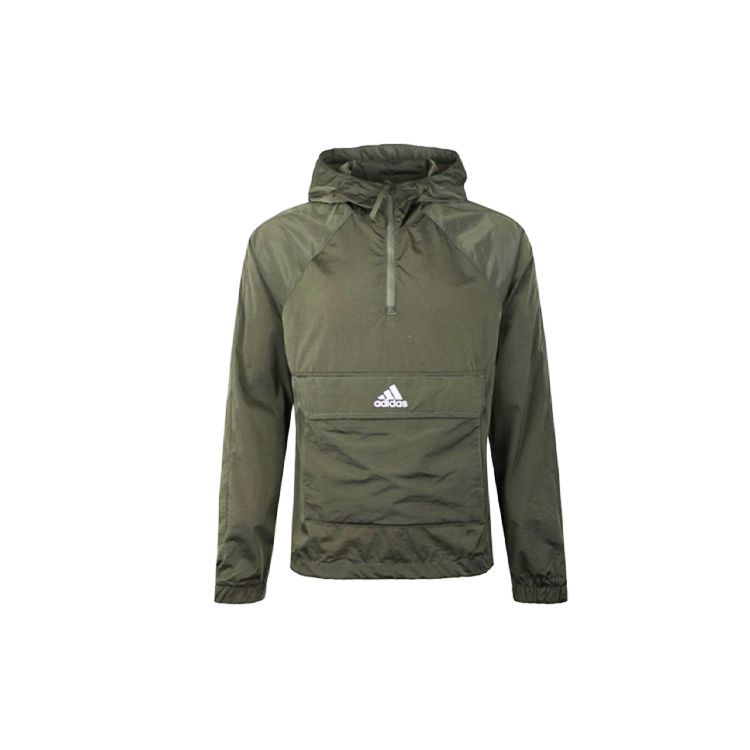 Adidas Повседневный пуловер с капюшоном на полумолнии, спортивная куртка, мужские топы, зеленый FI0618