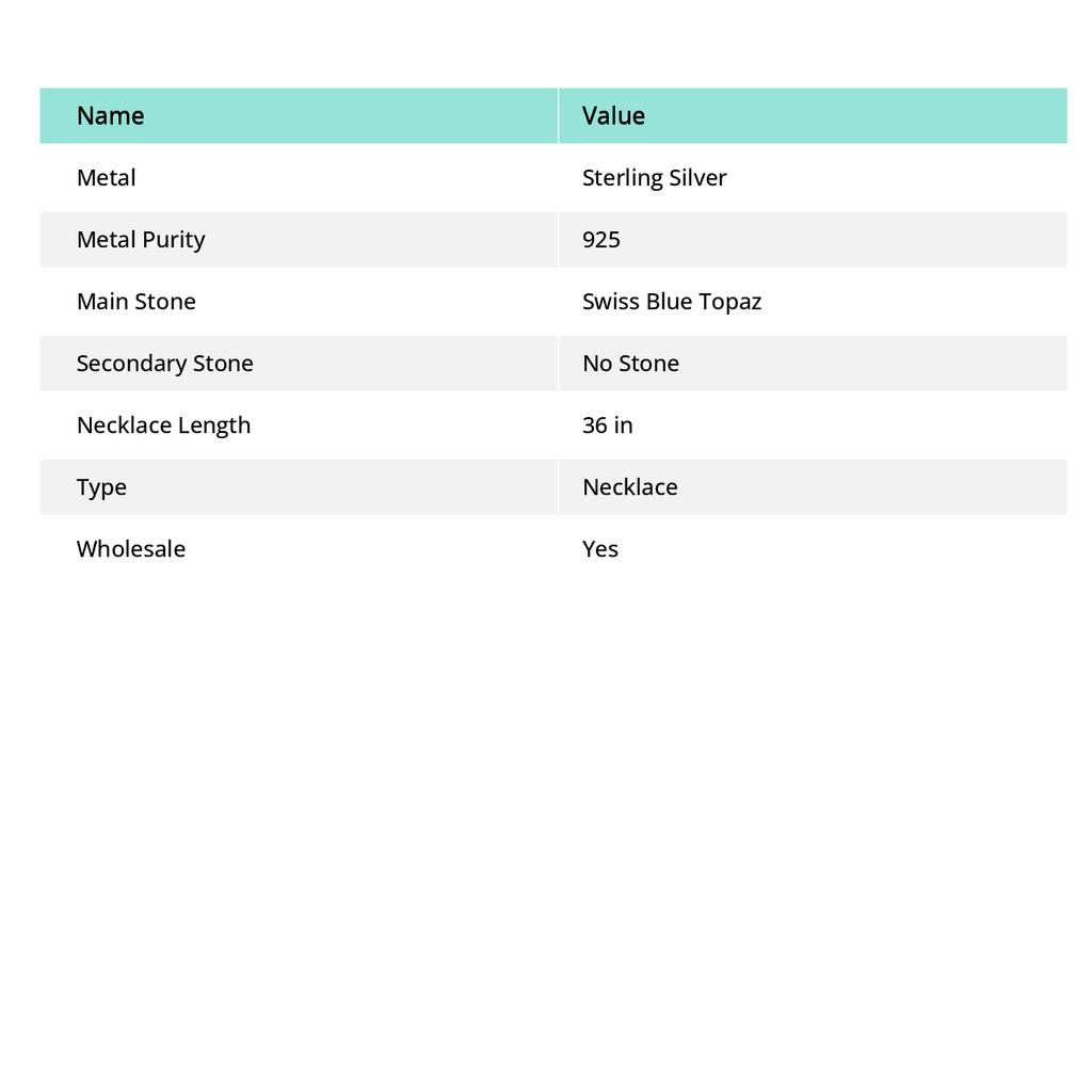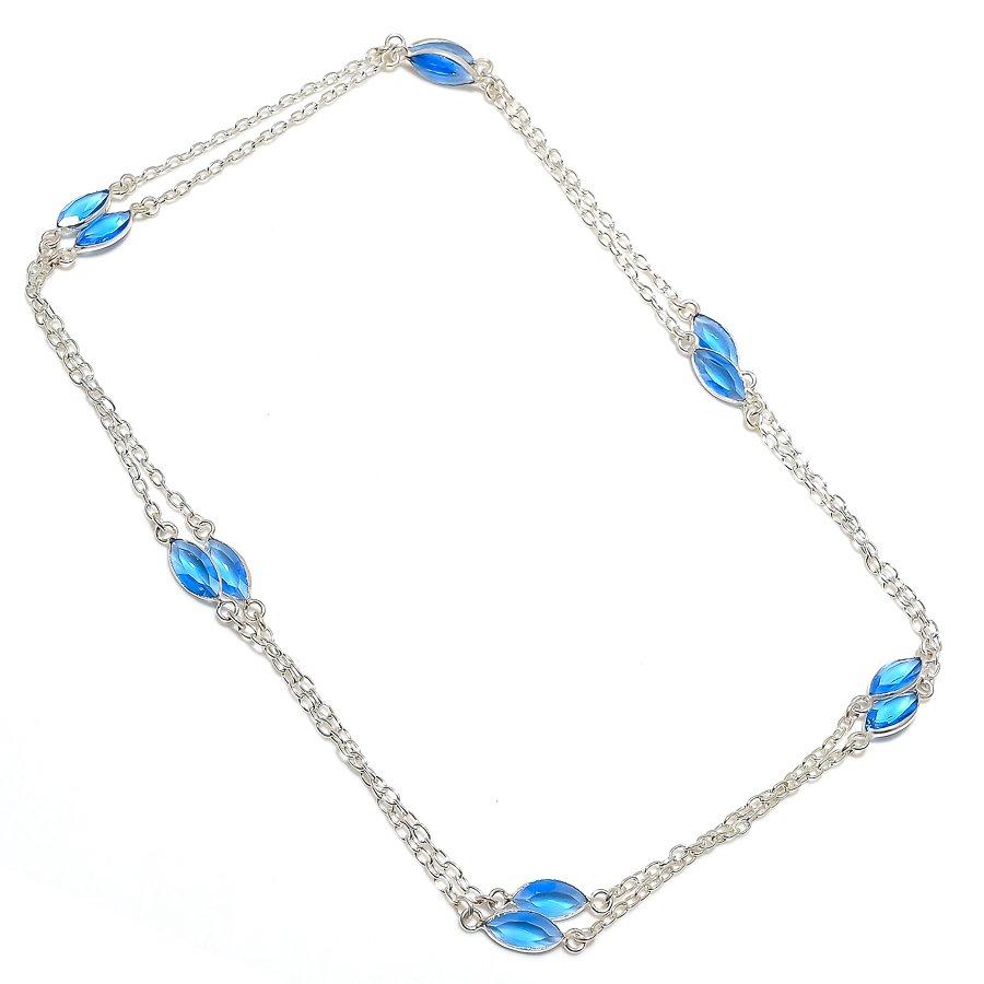 Швейцарский голубой топаз драгоценный камень 925 стерлинговое серебро ювелирное колье 36"