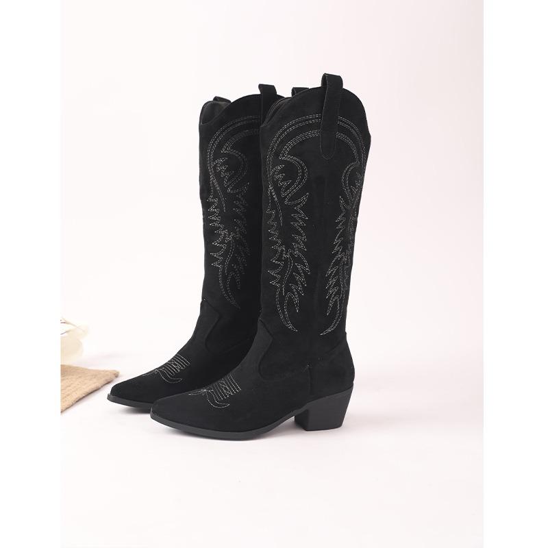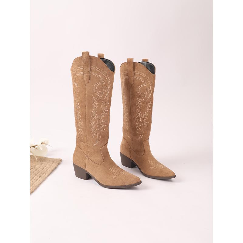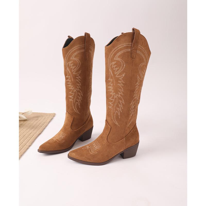 Maillard ретро остроносые высокие голенища вышитые ковбойские сапоги в западном стиле женские новые универсальные и тонкие сапоги-рыцари