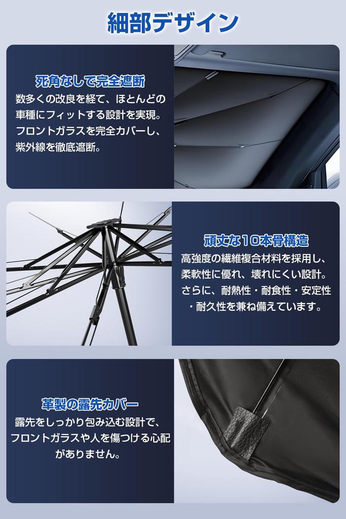 [10 усиленных ребер и кожаные наконечники] Изготовлен из высокопрочного композитного материала, гибкий и небьющийся. Он термостойкий, коррозионностойкий, стабильный и долговечный! Ребра плотно прилегают к лобовому стеклу, блокируя УФ-лучи со всех сторон.. Его можно безопасно использовать даже в жаркую летнюю погоду.. Кроме того, концы ребер покрыты кожей, поэтому вам не нужно беспокоиться о том, что поцарапаете лобовое стекло или людей при установке.