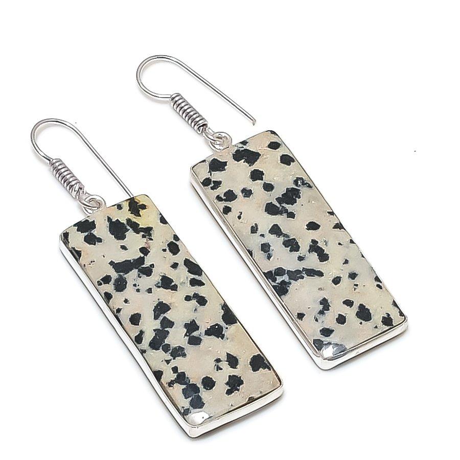 Dalmation Jasper Gemstone 925 Sterling Silver Jewelry Earring 2.13"