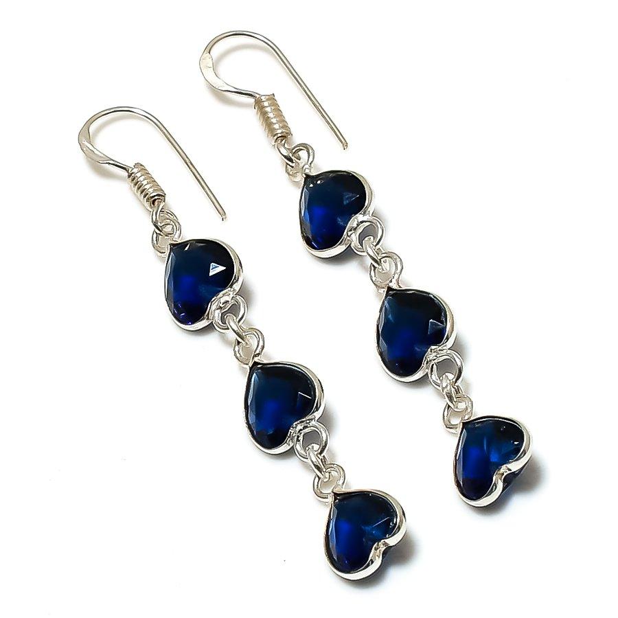 Лондонский голубой топаз драгоценный камень 925 стерлинговое серебро ювелирные изделия серьга 2.36"