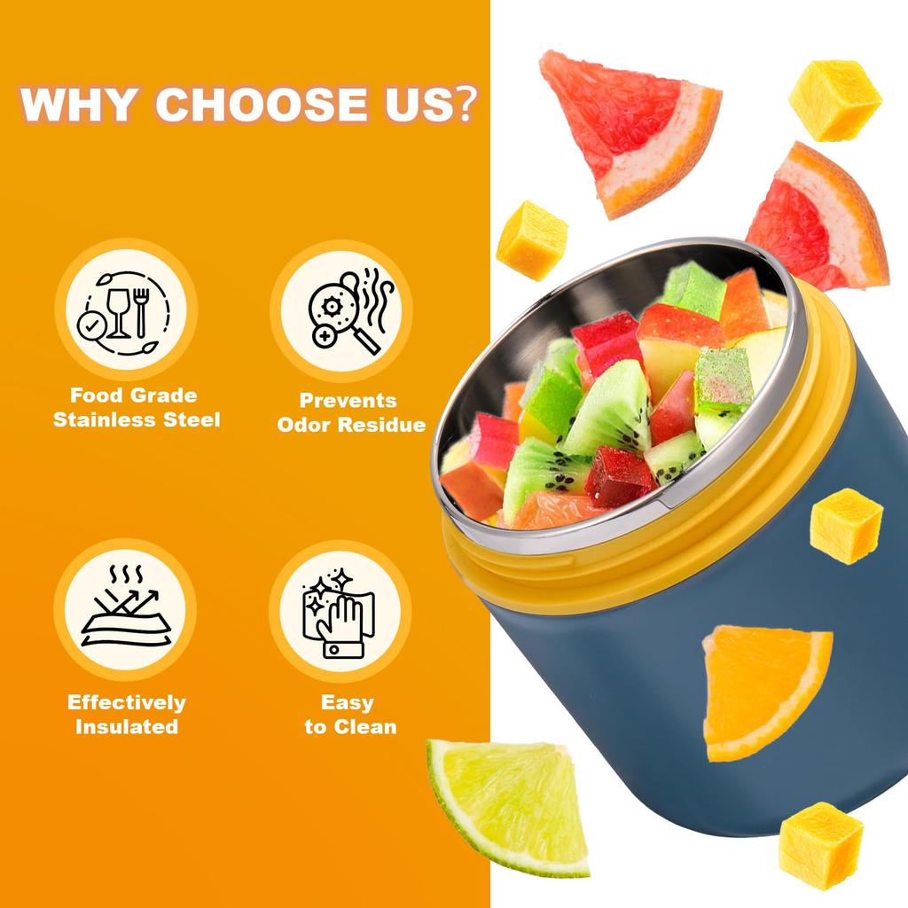 510 мл суповая чашка из нержавеющей стали, термоконтейнер для обеда, контейнер для еды с ложкой для школьников