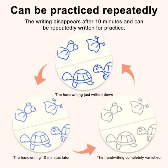 Инновационные исчезающие чернила: Почувствуйте магию чернил, которые исчезают через 30 минут, предоставляя бесконечные возможности для написания и переписывания прописных и печатных упражнений.. Идеально подходит для обучения грамоте детей, делая обучение увлекательным и захватывающим.