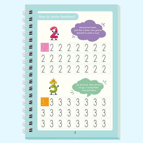 Прочная бумажная конструкция: Наша рабочая тетрадь для письма, изготовленная из толстой, прочной бумаги, устойчива к пятнам и гарантирует долговечность.. Мягкий силиконовый держатель для ручек повышает безопасность и комфорт, идеально подходит для детсадовских принадлежностей.