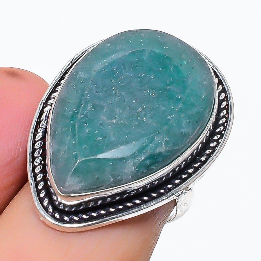 Изумруд(Смоделированный) Кольцо из серебра 925 пробы с драгоценными камнями, размер 7 — купить товар онлайн с бесплатной доставкой по всему миру!