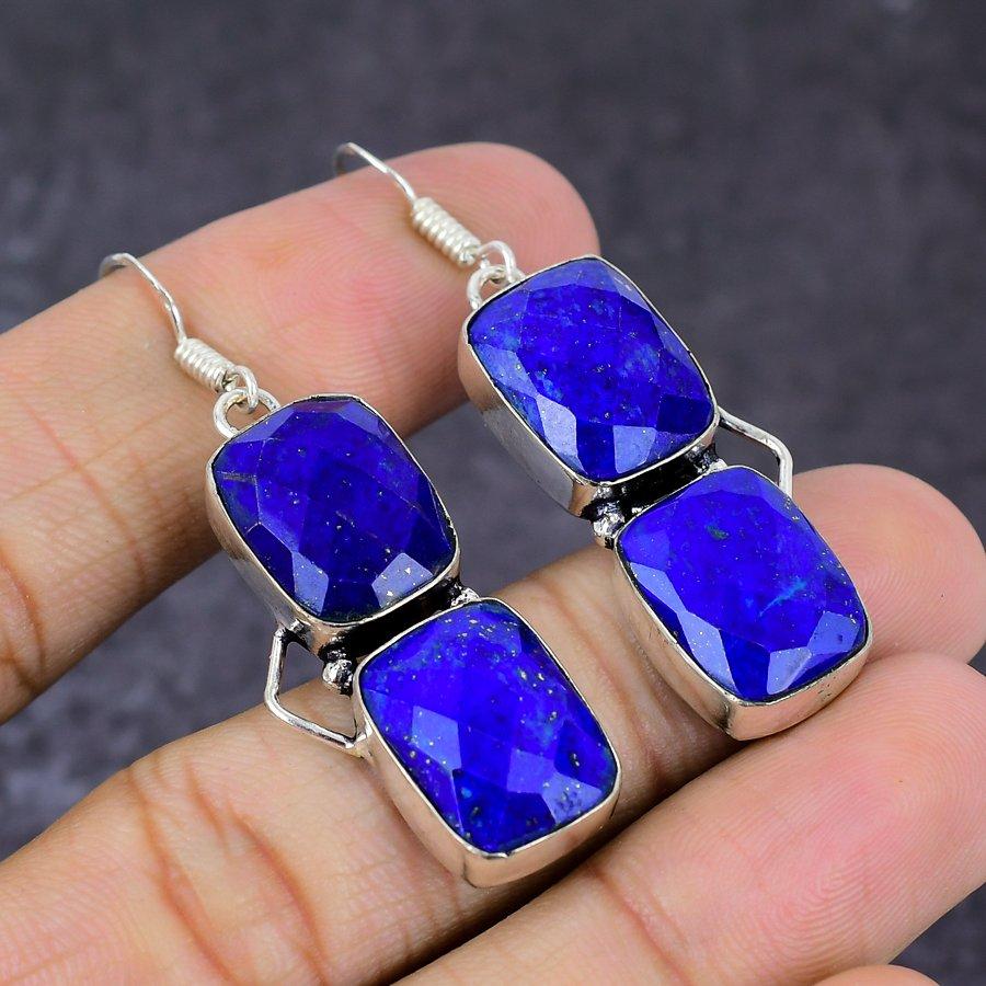 Сапфир(Смоделированный) Серьги ручной работы из стерлингового серебра 925 пробы с драгоценными камнями 2,17 дюйма