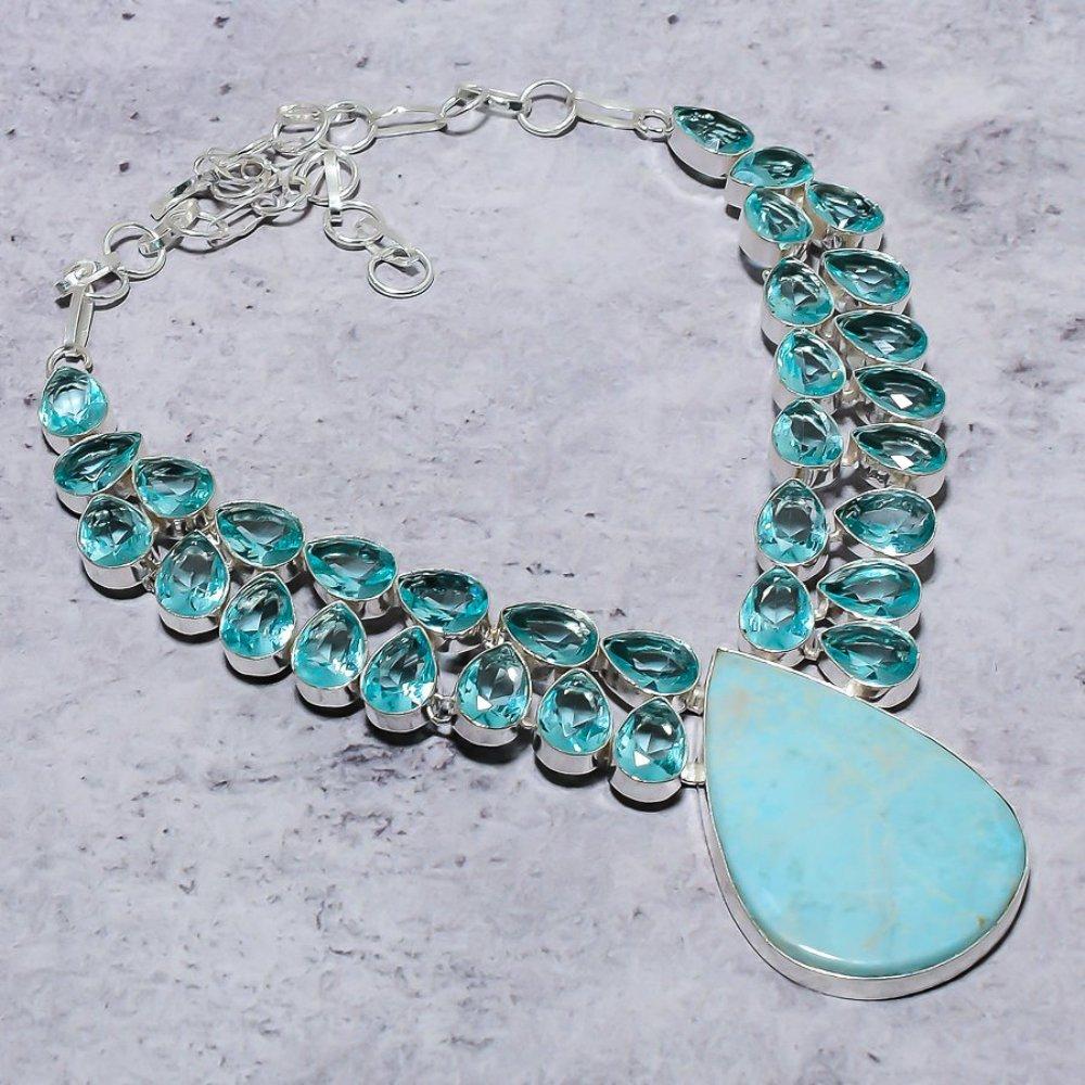 Карибский ларимар, голубой топаз, серебро 925 пробы, подарочное ювелирное украшение, колье 18 дюймов