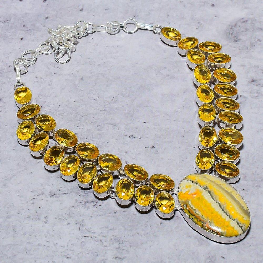 Шмель Яшма,Цитрин Драгоценный камень 925 Стерлинговое серебро Ювелирное ожерелье 18"