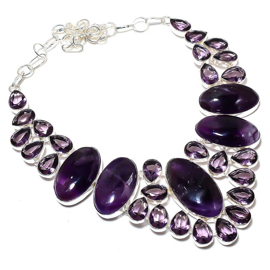 Шалфей Аметист, Аметист Драгоценный камень 925 Стерлинговое серебро Ювелирное ожерелье 18"