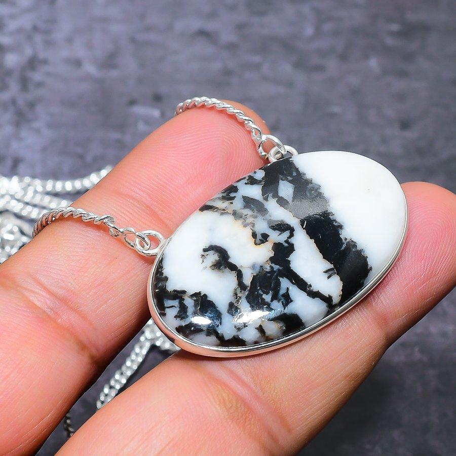 Драгоценный камень Яшма Зебра Серебро 925 пробы Ювелирное колье 18"