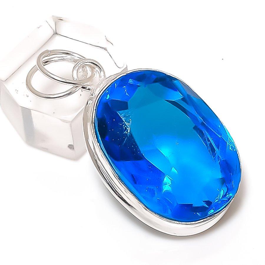 Швейцарский голубой топаз драгоценный камень 925 стерлинговое серебро ювелирный кулон 1,69"
