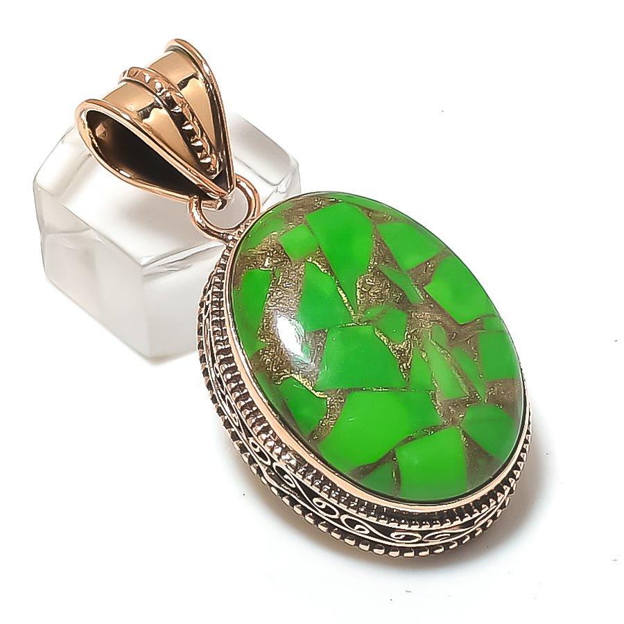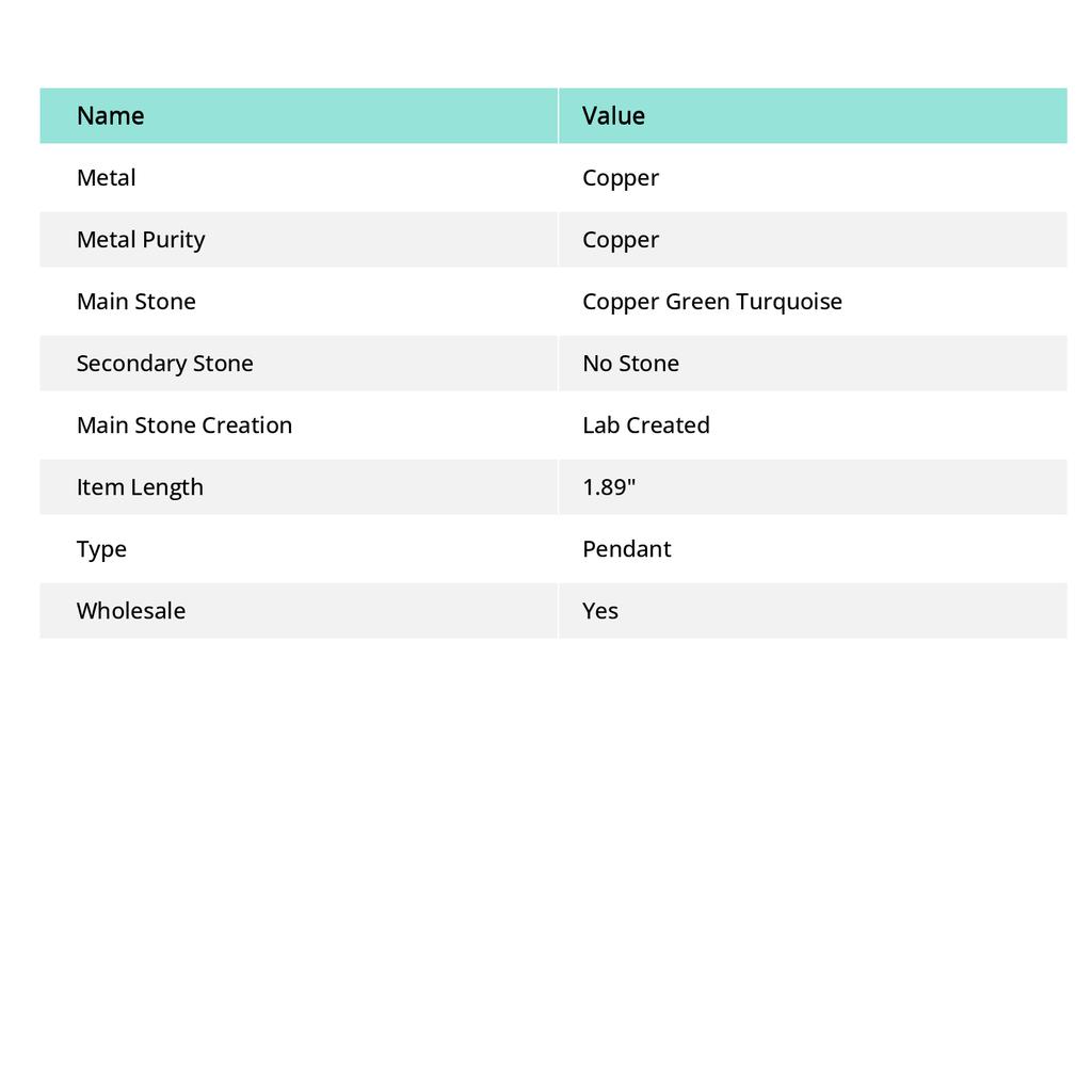 Copper Green Turquoise Gemstone Copper Jewelry Pendant 1.89"