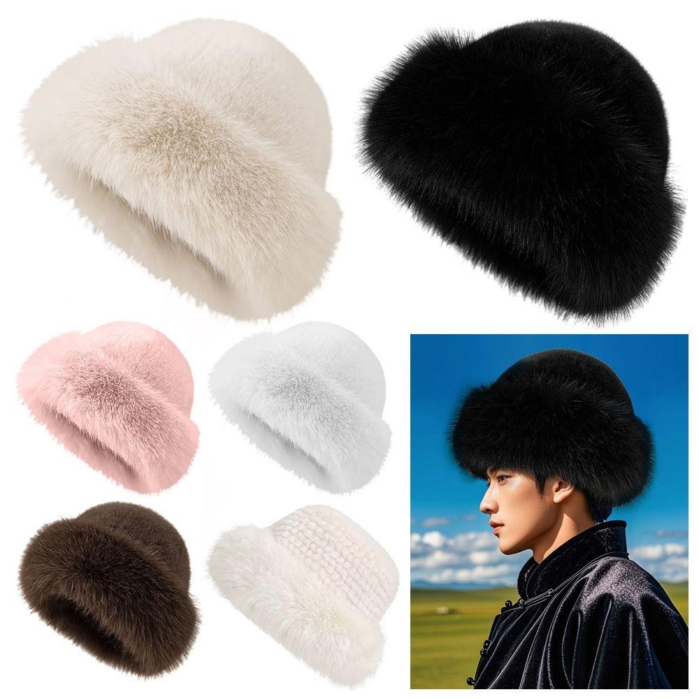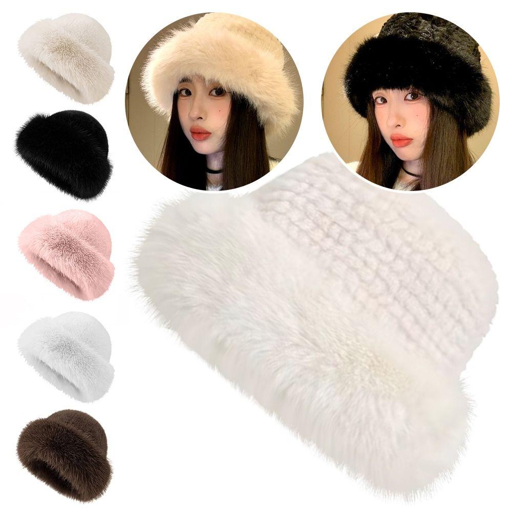 Шерстяная шапка-пуловер Имитация норкового меха Шапка с защитой ушей Модная зимняя шапка