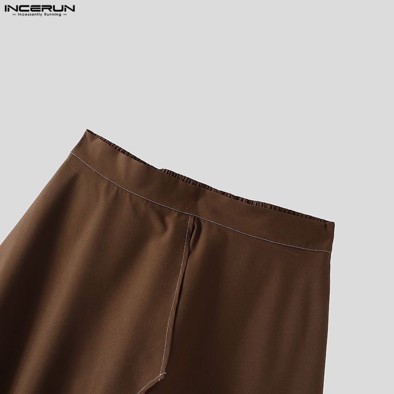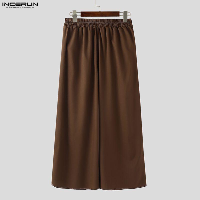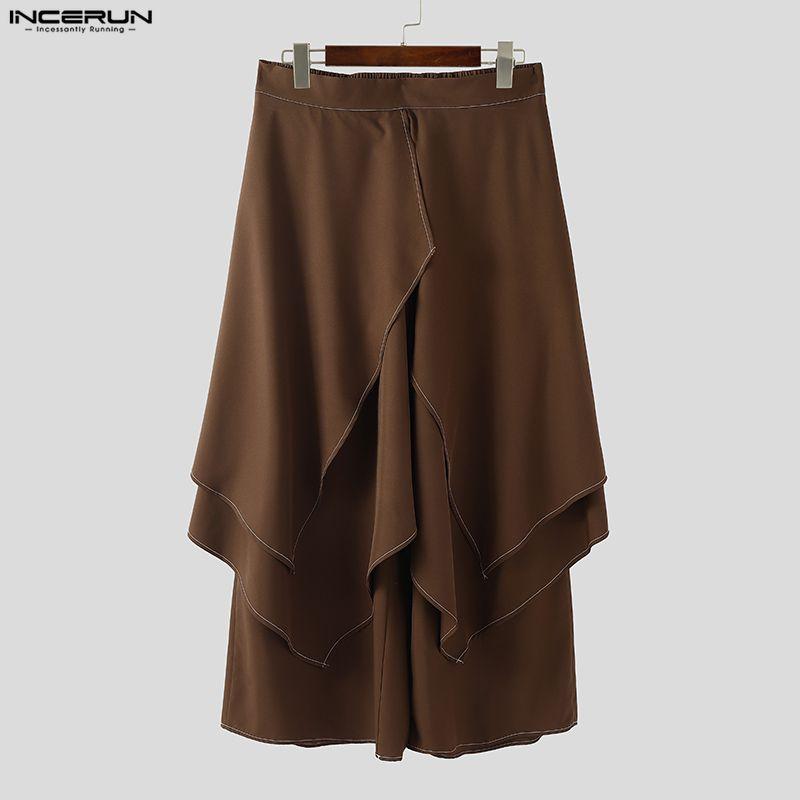 INCERUN Мужские повседневные свободные длинные брюки с эластичной спинкой и неровными слоями спереди