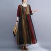 Женское весеннее ретро платье в полоску с длинным рукавом - этнический стиль, свободный дизайн с карманом и длинной юбкой
