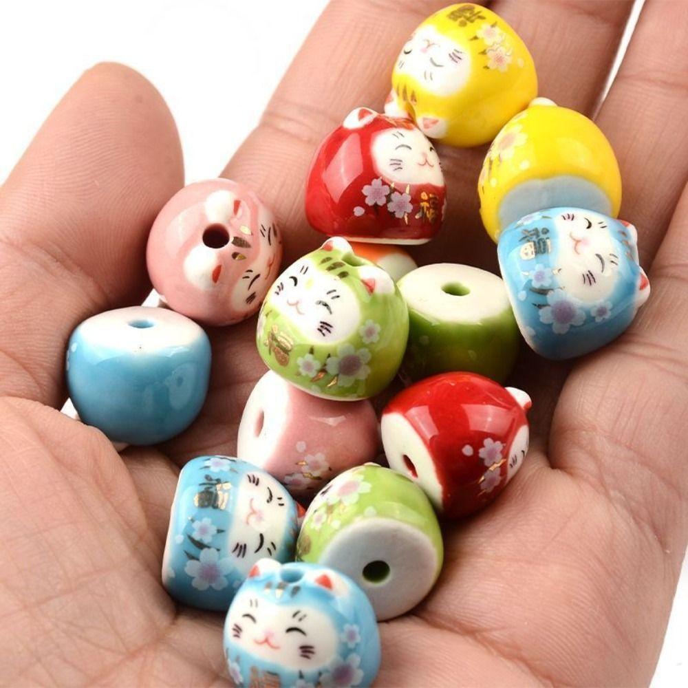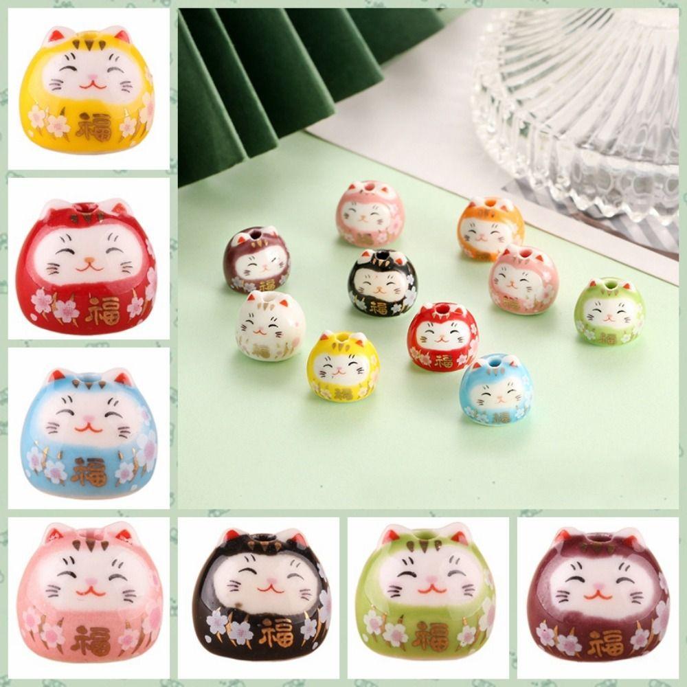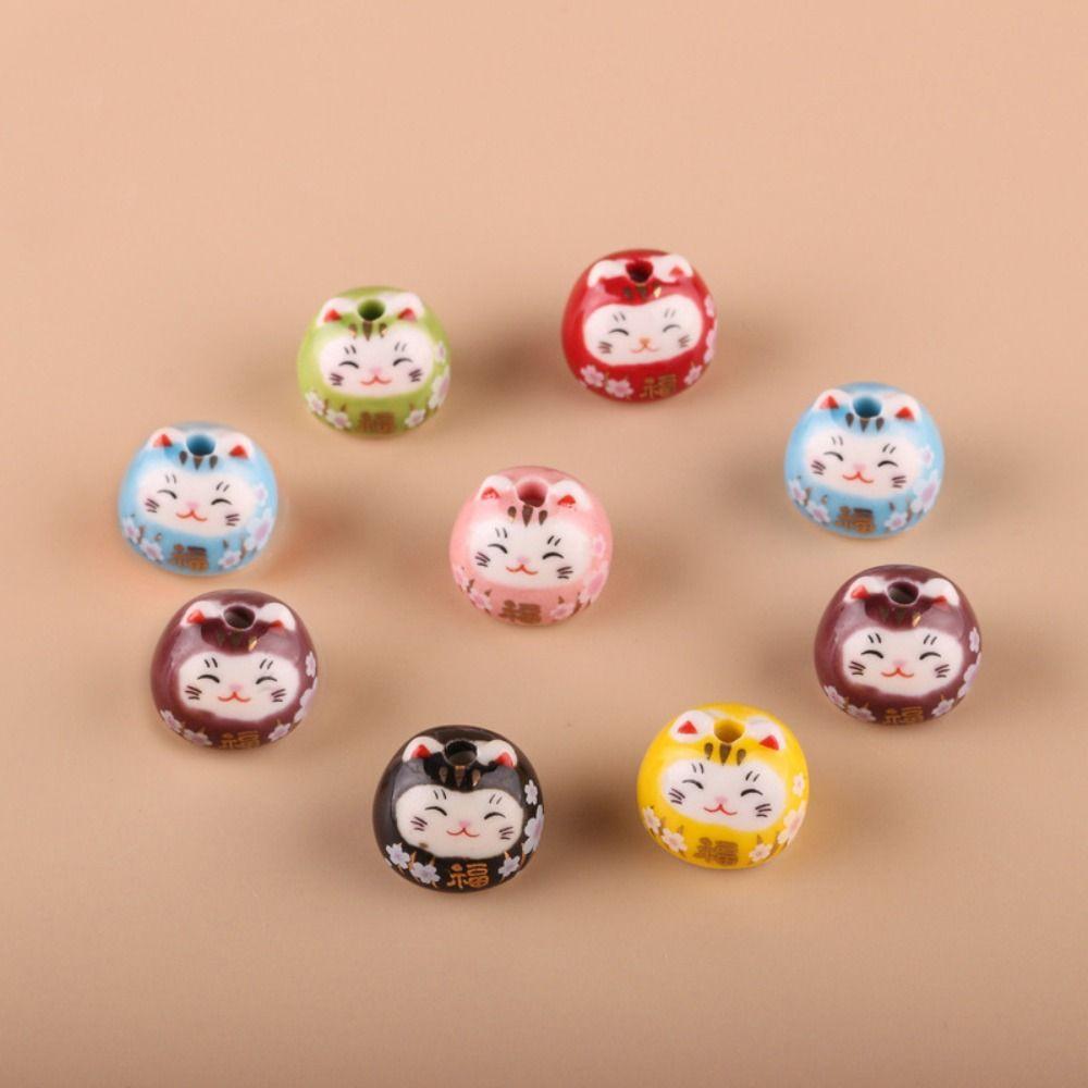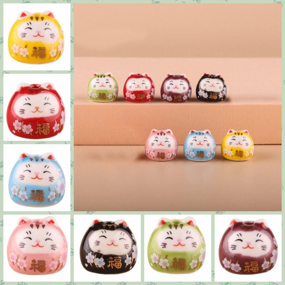 2 шт. с отверстием для кошки керамический орнамент красочные благословение кошки бусины кошка керамические бусины изготовление ювелирных изделий