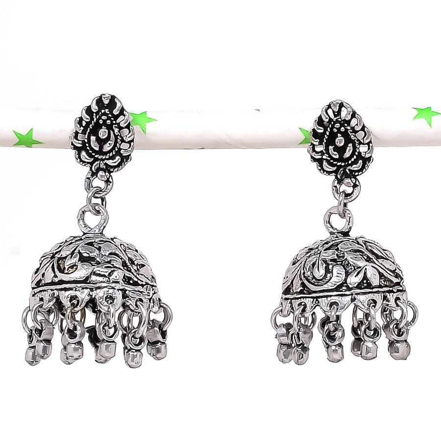 Natural Indian Look Jhumki Gemstone Silver Tribal Bali Earring 1.62 e3y88 — купить товар онлайн с бесплатной доставкой по всему миру!