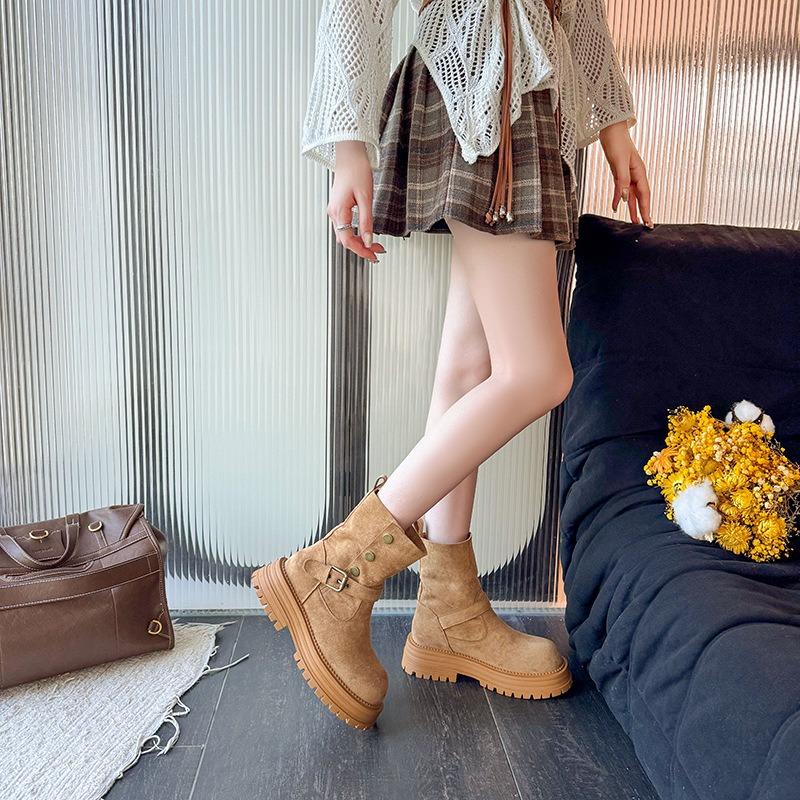 Ретро двухсторонняя пряжка ремня ботинки Мартин женские новые на толстой подошве универсальные ковбойские ботинки