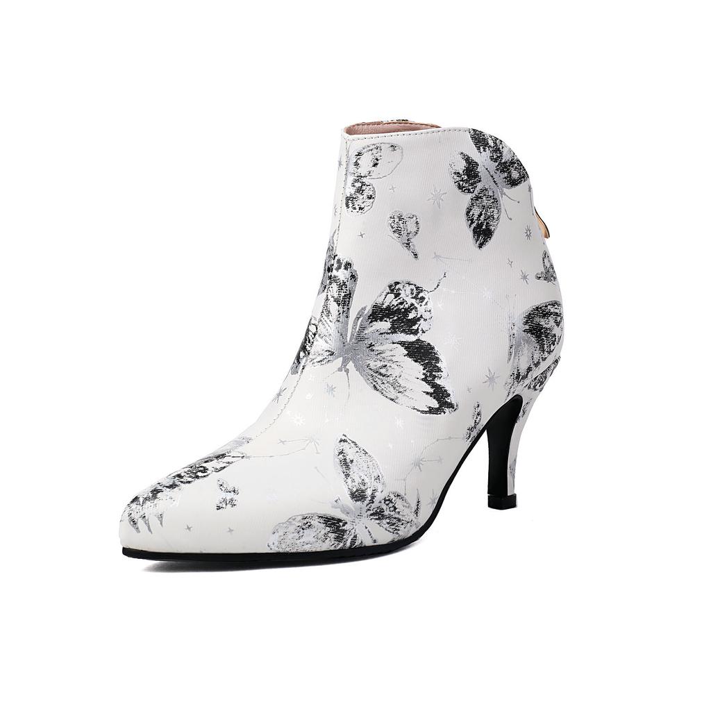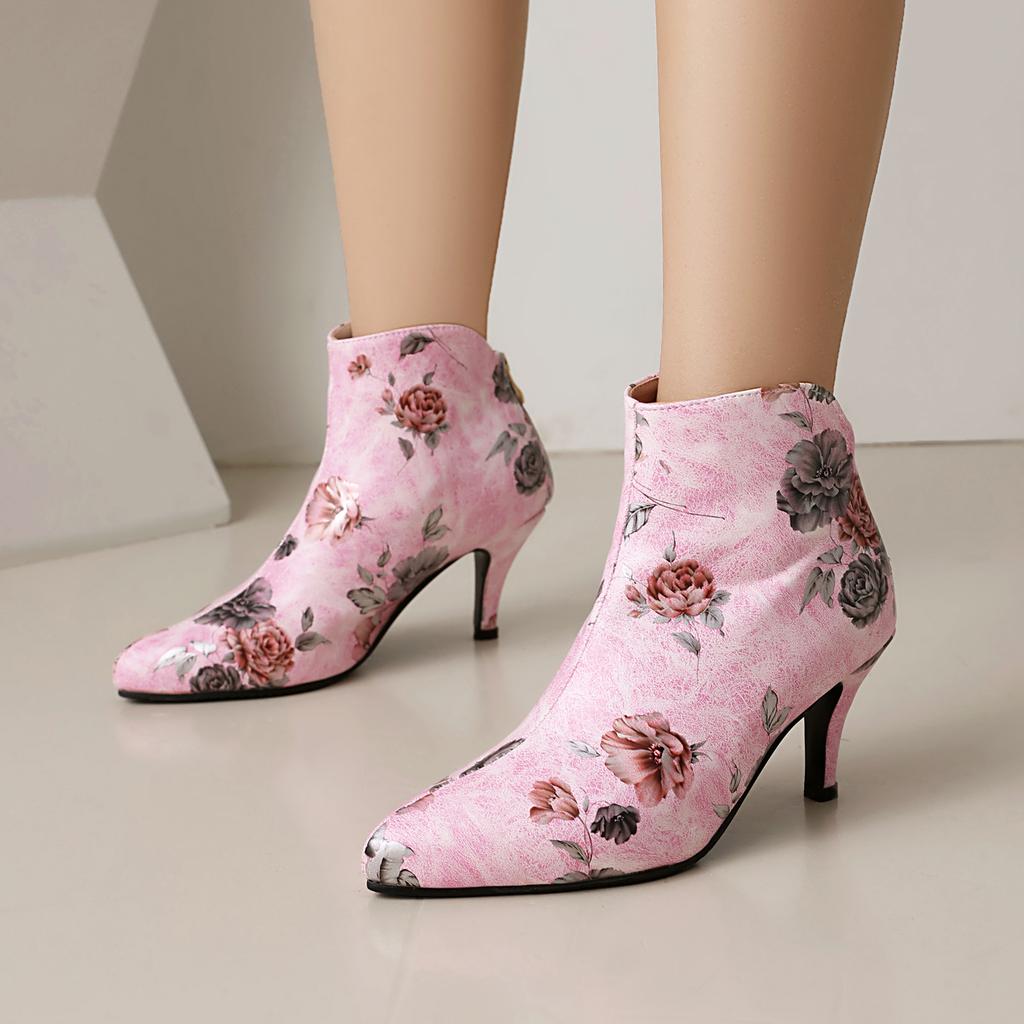 Лаконичные женские ботильоны с цветочным принтом, на каблуке, обувь из ПУ, с острым носком, обувь 2024 осень-зима, новинка