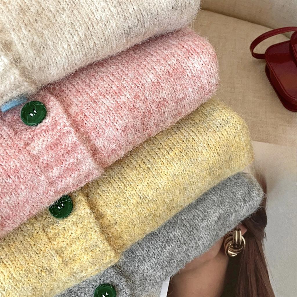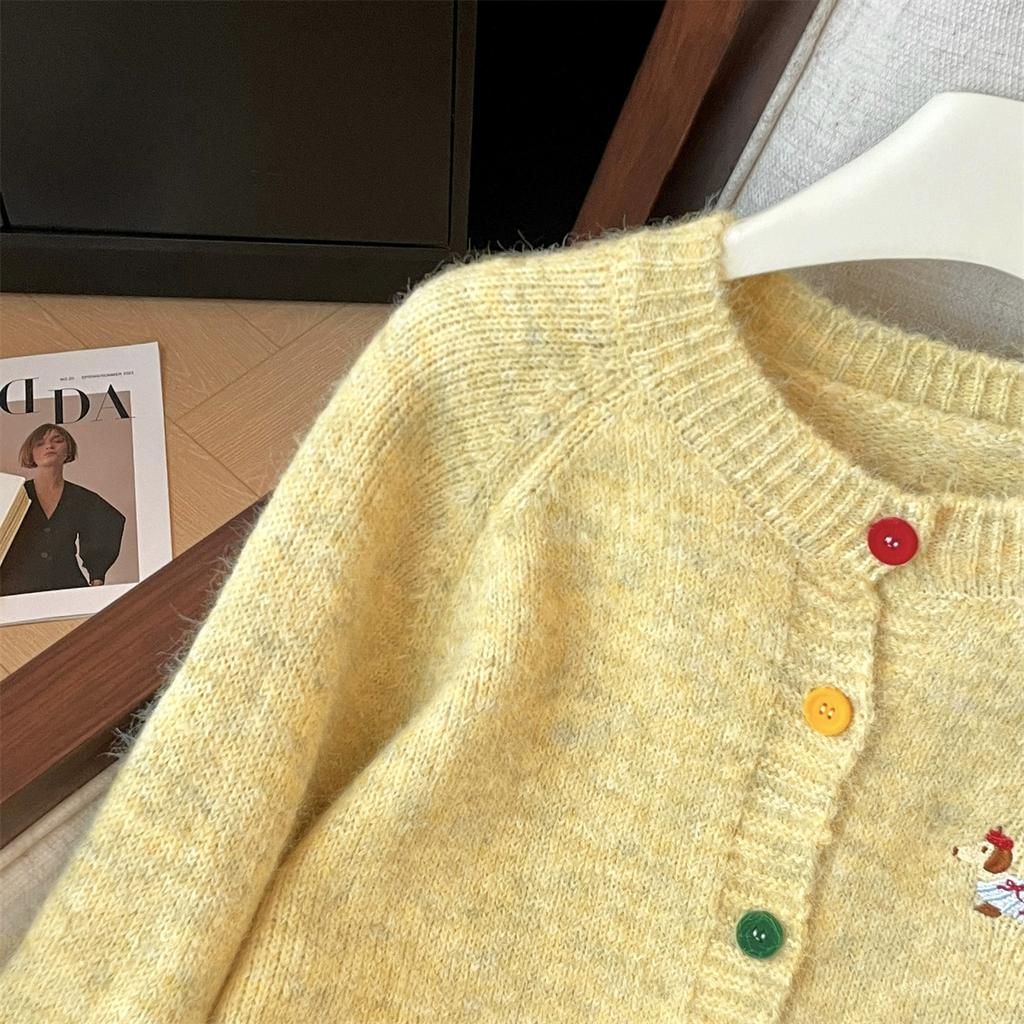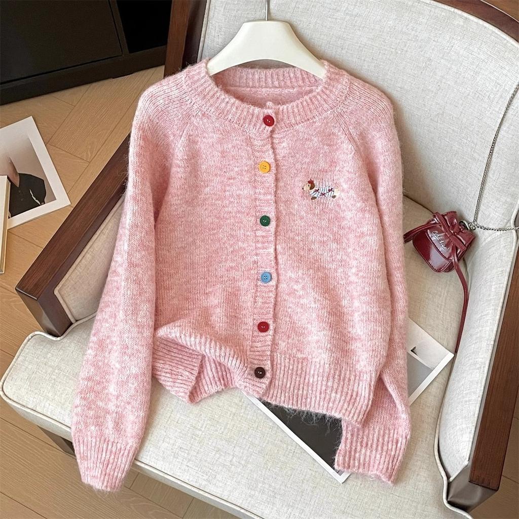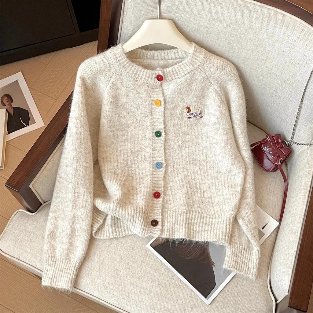 DIMANAF Зима 2025 Осень Кардиган Вышивка Женщины Пуговицы Свитера Вязание Повседневный Стиль Свободный Свитер