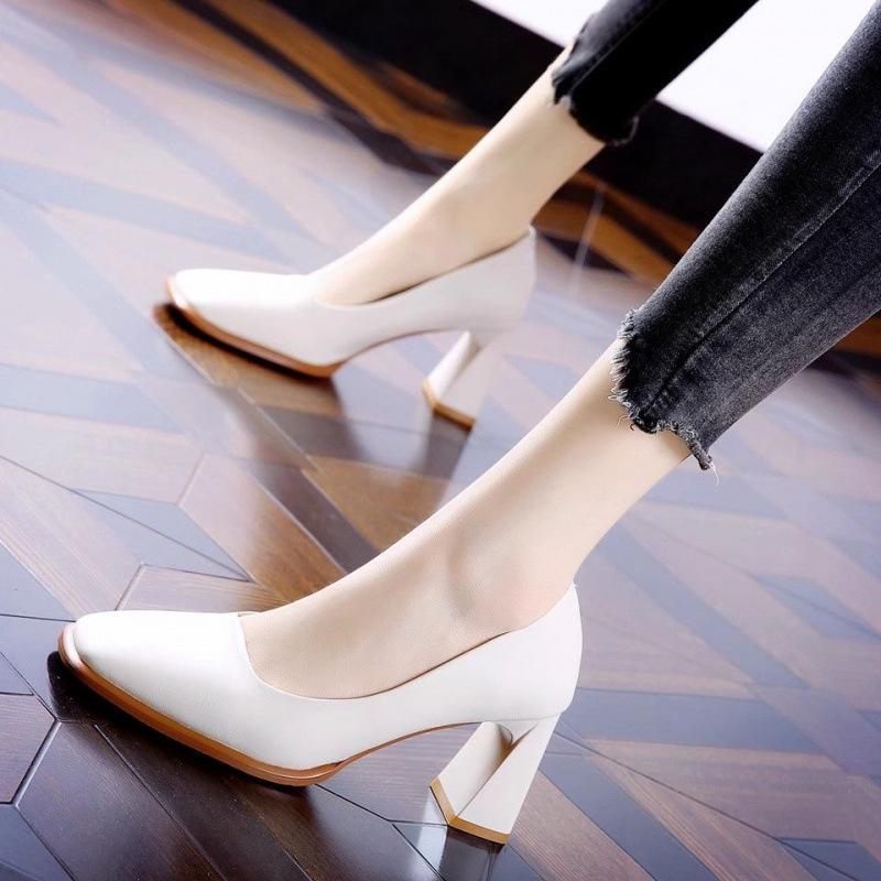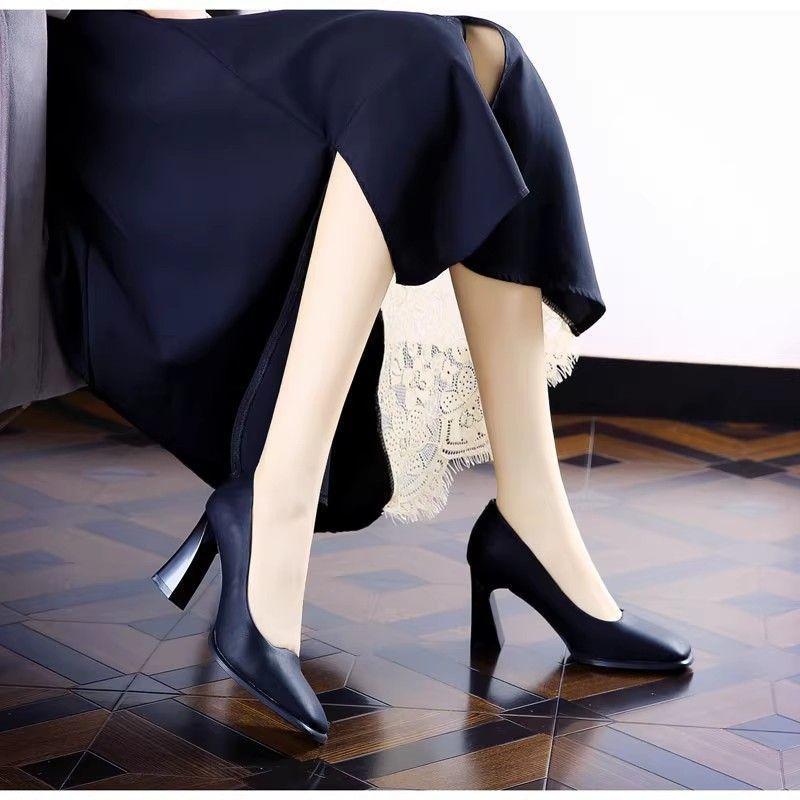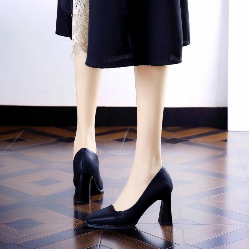 Профессиональные туфли-лодочки с квадратным носком и черным высоким каблуком, весна 2025, новая темпераментная женская обувь на среднем толстом каблуке для работы