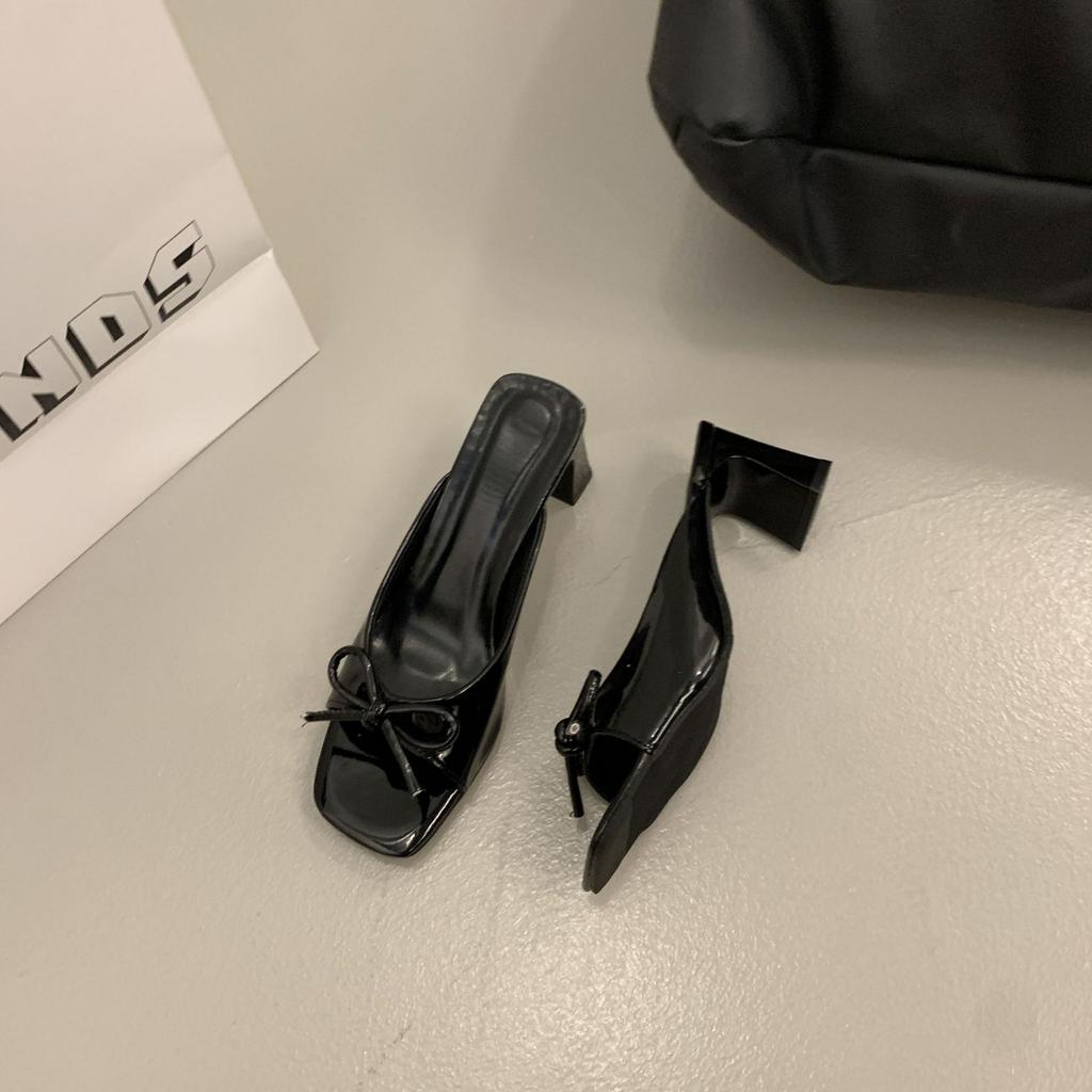 French bow thick heel cool slippers women's outerwear 2025 new summer large size fish mouth open-toed high heels