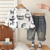 Комплект из 3 предметов с длинным рукавом для мальчиков, детский комплект с принтом: рубашка + белая футболка + повседневные брюки, одежда высокого качества