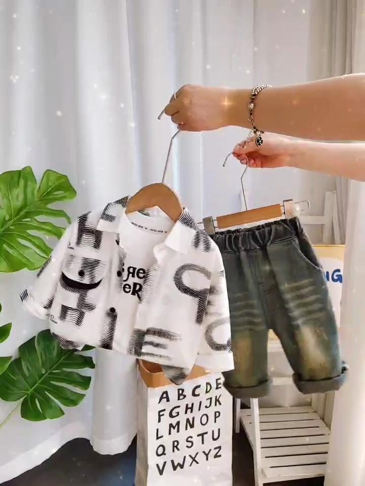 Комплект из 3 предметов с длинным рукавом для мальчиков, детский комплект с принтом: рубашка + белая футболка + повседневные брюки, одежда высокого качества — купить товар онлайн с бесплатной доставкой по всему миру!
