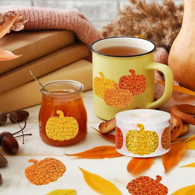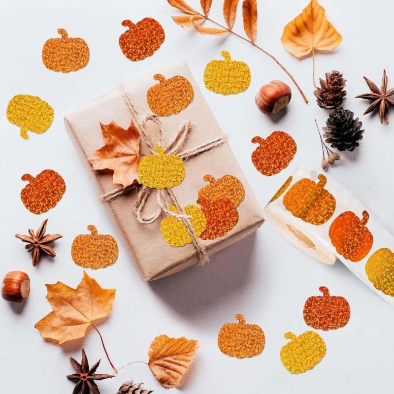 500 шт./рулон Хэллоуин Тыква Лазерные Наклейки День Благодарения Осенний Урожай Оранжевая Тыква Вечеринка Подарочная Упаковка Коробка Украшение Стикер