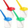 Непроливаемые стаканчики для краски с крышками и 4 круглые кисти, разноцветный пластик для DIY живописи и поделок