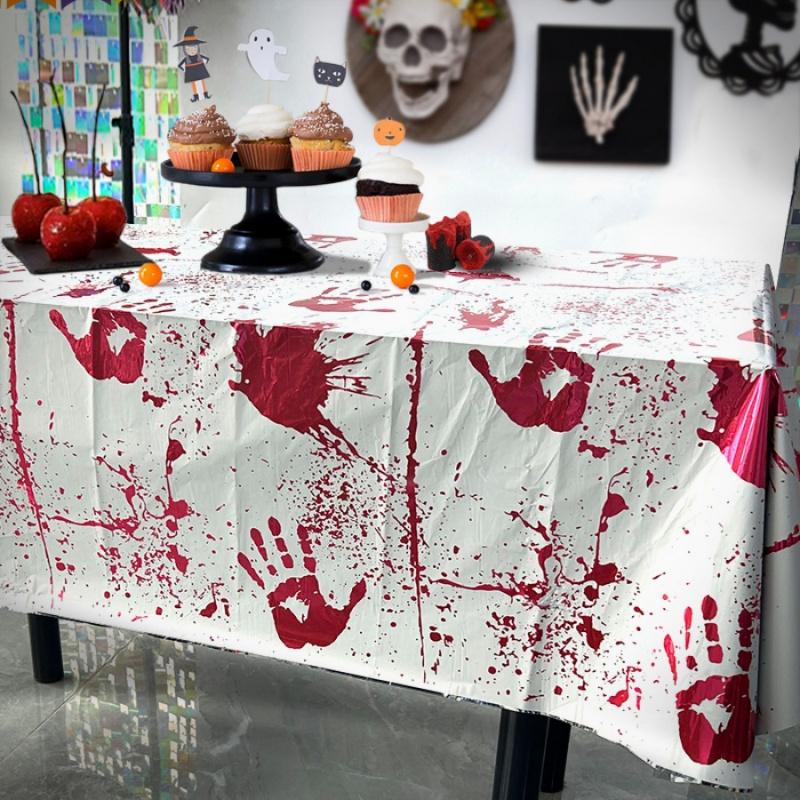 1pcHalloween Tablecloth Bat Castle Simulation Blood Handprint Disposable Tablecloth Party Dining Table Decoration Tablecloth