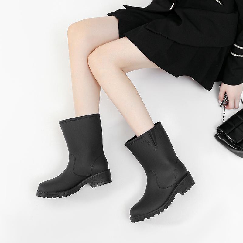 Женская новая обувь для дождя на высоком каблуке, водонепроницаемые и нескользящие резиновые сапоги средней высоты, модные резиновые туфли, бахилы, цельные уличные водонепроницаемые сапоги