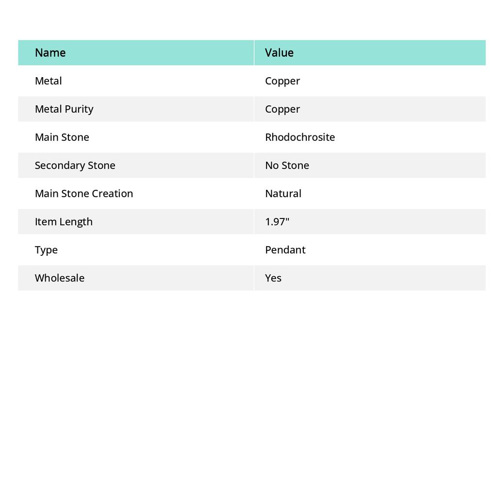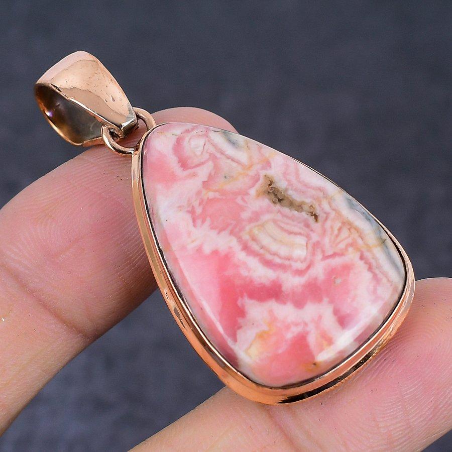 Родохрозит Драгоценный Камень Медная Бижутерия Подвеска 1,97"