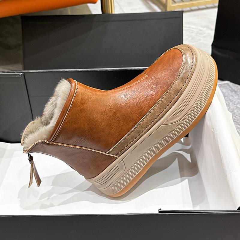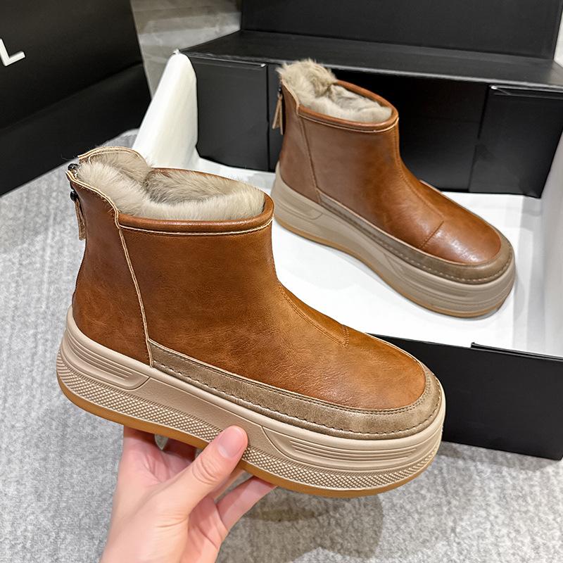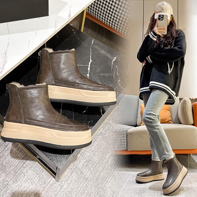 Женские зимние теплые хлопковые ботинки на толстой подошве с плюшем, толстой кожей, водонепроницаемые и увеличивающие рост ботинки Мартина из хлопка