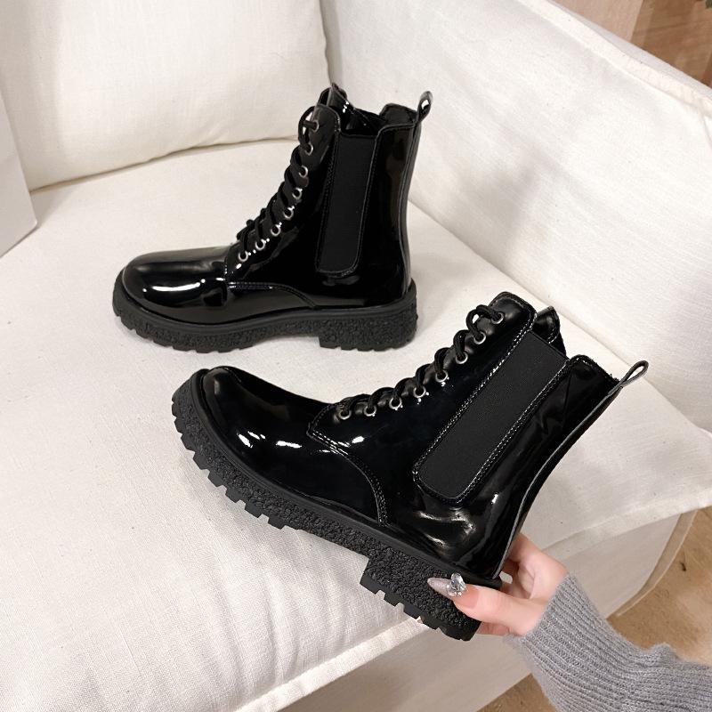 Женские сапоги средний каблук круглый носок вырез вестерны 2025 осень новинка корейская версия лакированная кожа женская обувь удобные ботинки мартин — купить товар онлайн с бесплатной доставкой по всему миру!