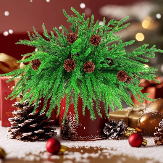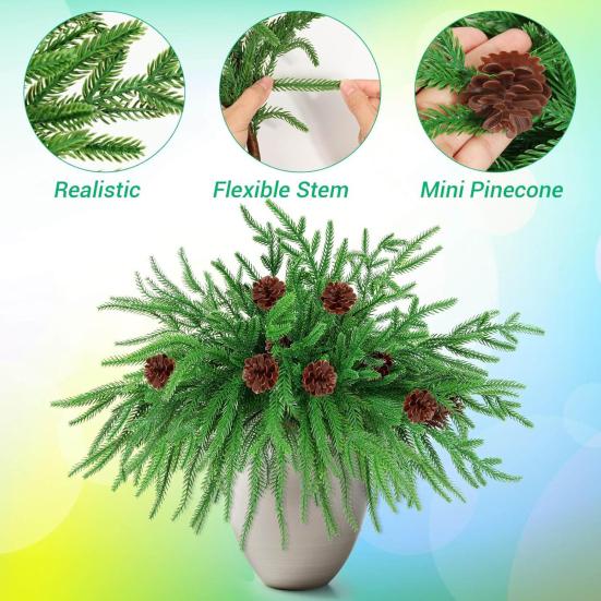 Украсьте свой дом этими реалистичными имитациями растений. Изготовленные из высококачественных материалов, эти растения предлагают долговечное декоративное решение, которое можно использовать повторно для различных случаев.. Изысканный дизайн имитированных сосновых веток обеспечивает реалистичный внешний вид, идеально подходит для ваз, цветочных композиций, украшения обеденного стола, вечеринок, рождественских елок и домашнего декора..